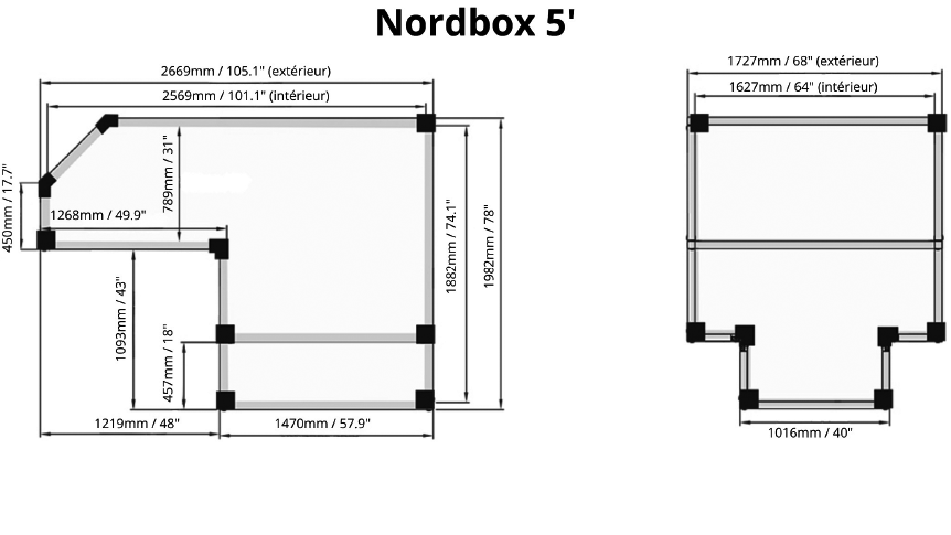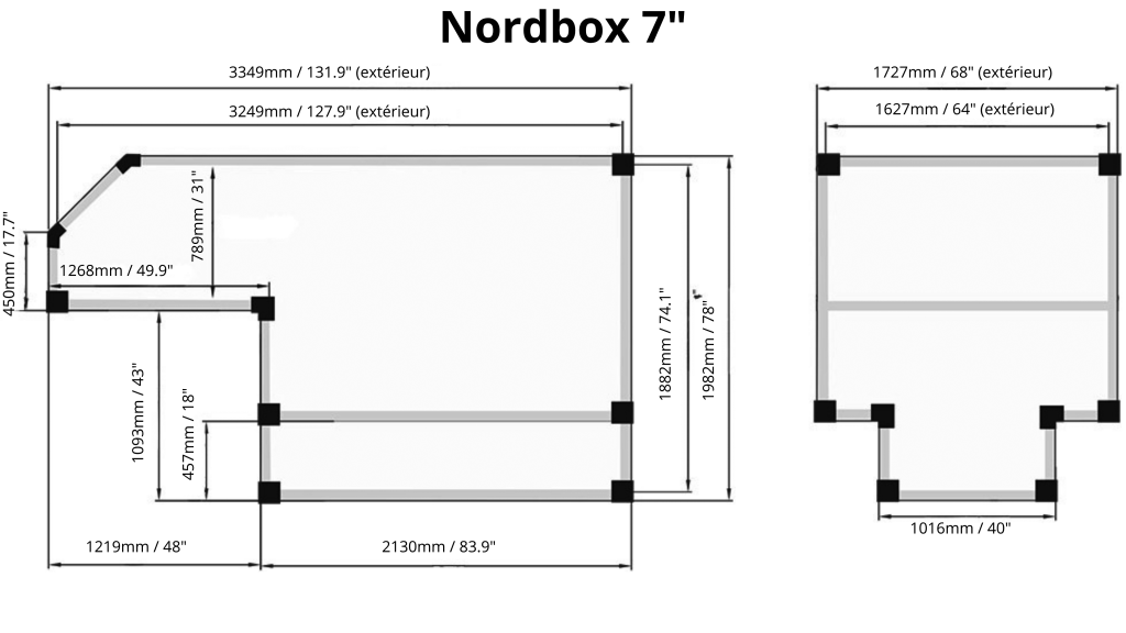 - La caravane Nordbox 5’ ou 7’ avec joints de finition noirs.